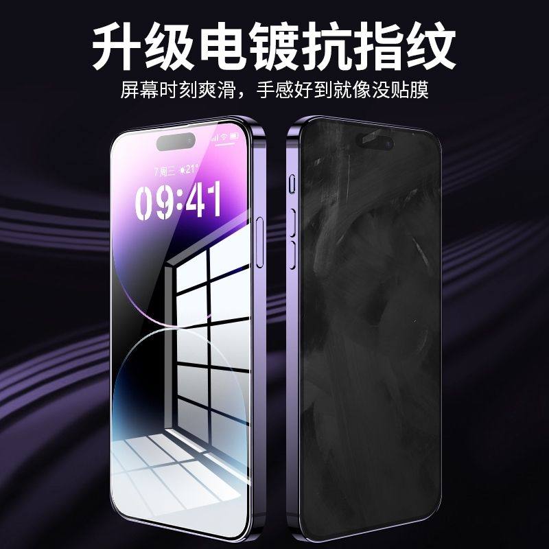 [不沾指纹]适用iPhone17/16钢化膜苹果15/14手机13promax防窥12全屏XR/xsmax全包11贴X防摔8por高清plus