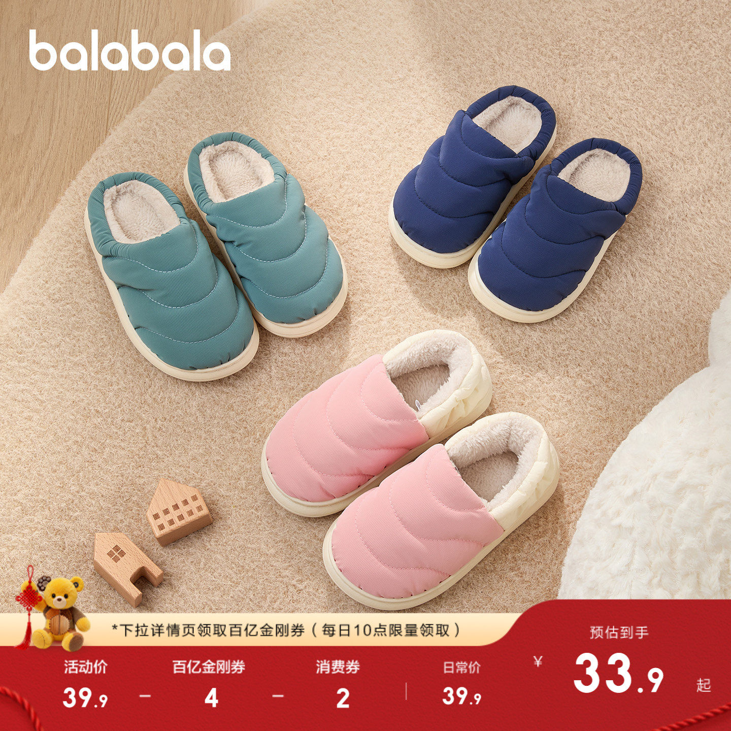 巴拉巴拉儿童棉拖鞋男女童宝宝幼儿2025室内鞋子包跟秋冬棉鞋萌趣