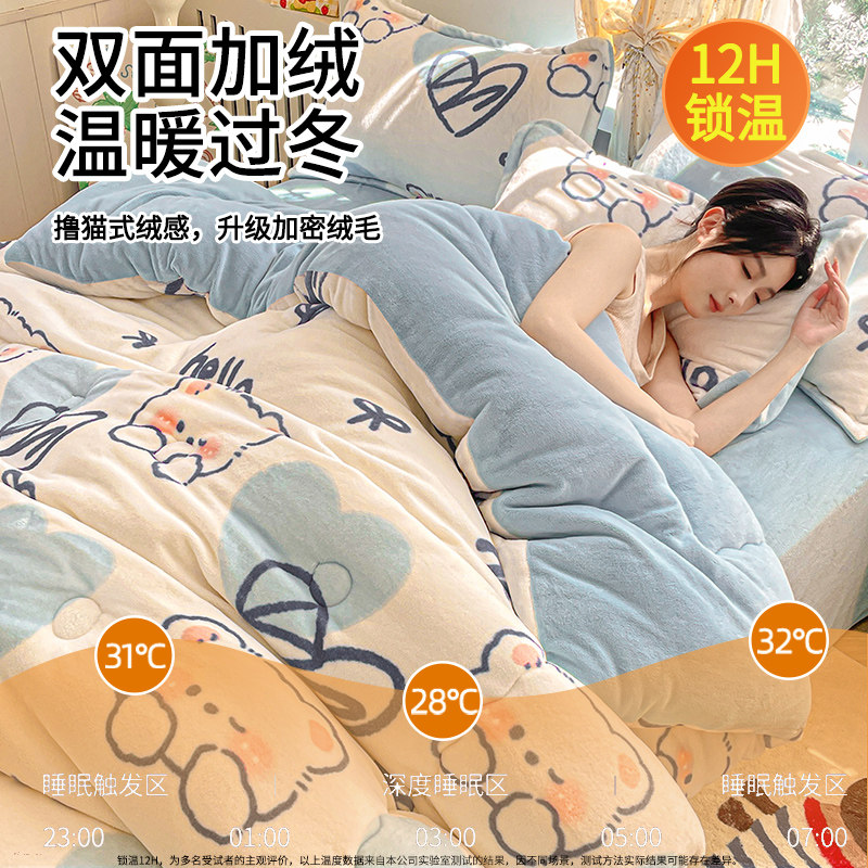 双面绒暖被加厚抗菌秋冬被学生宿舍单人免被罩被褥床品双人被芯新