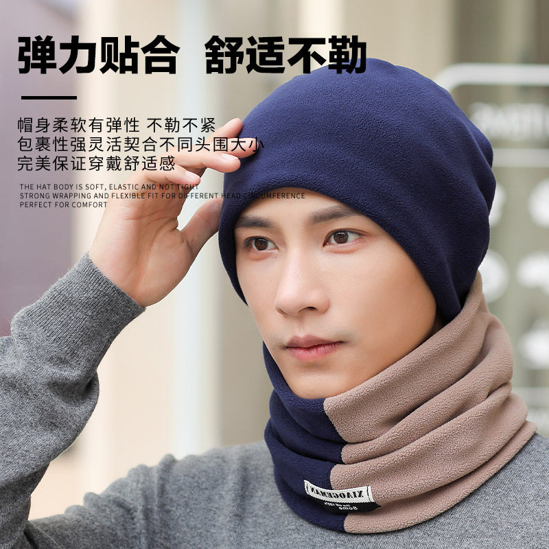 围脖帽子冬天男士头套骑手面罩保暖加绒冬季防寒双色男款护颈脖套