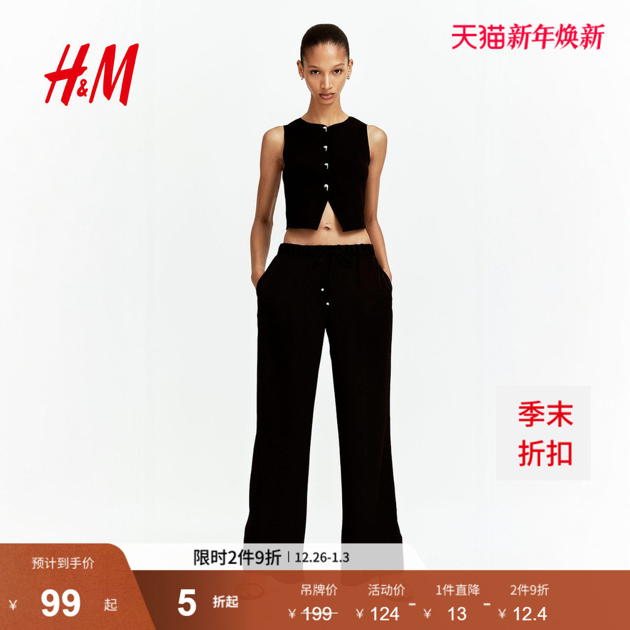 HM2026春季新款女装休闲裤时尚潮流柔软气质抽绳阔腿裤1262105