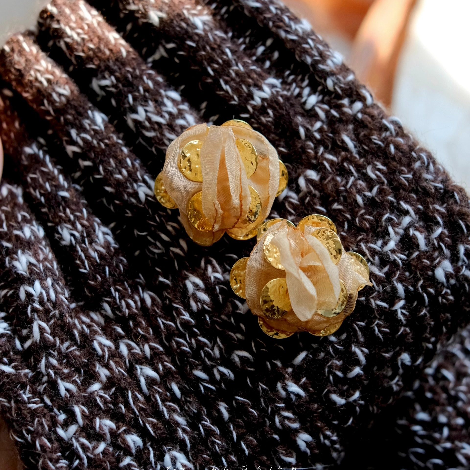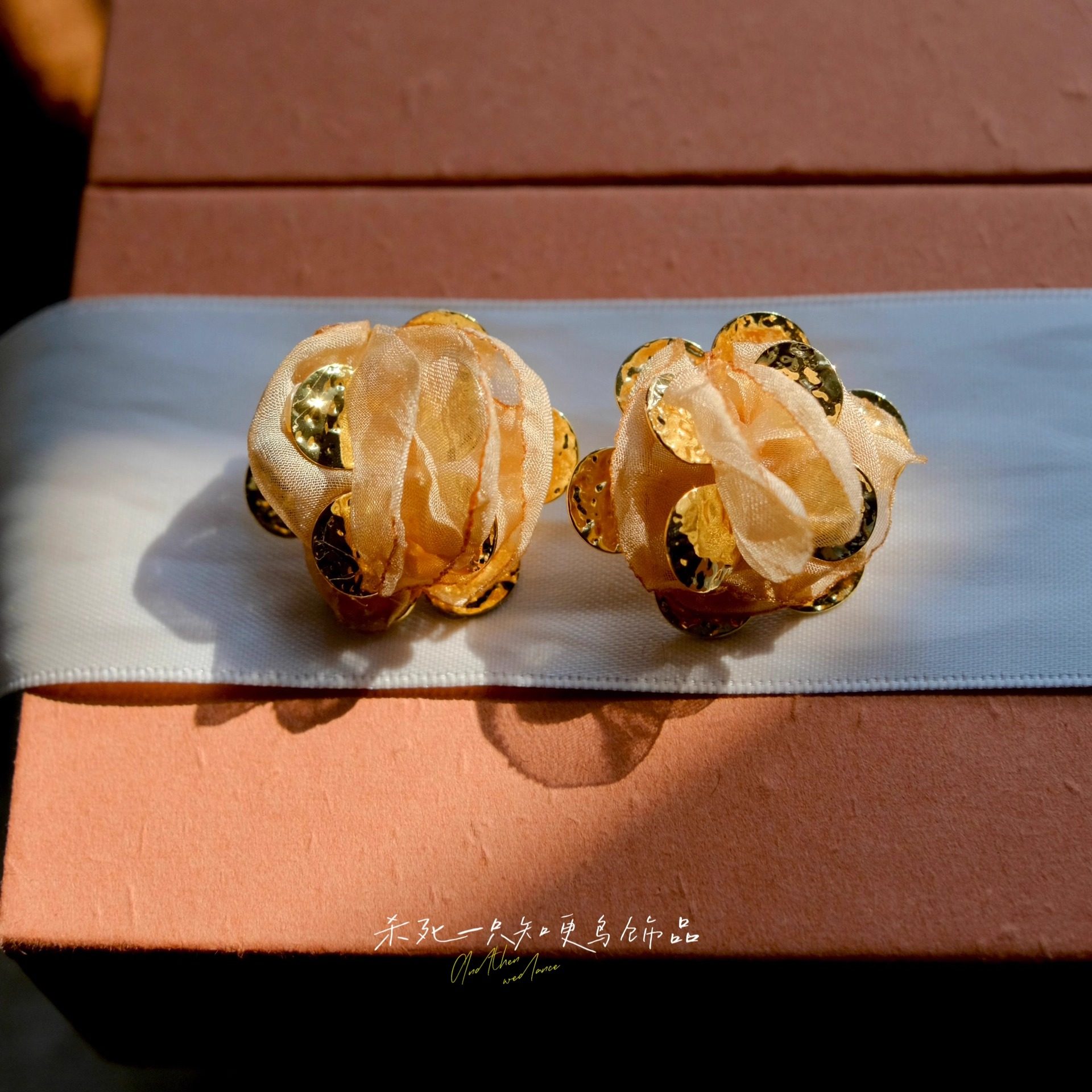 《黄昏花境》秋冬美拉德复古金色花朵网纱温柔耳环耳钉耳夹无耳洞