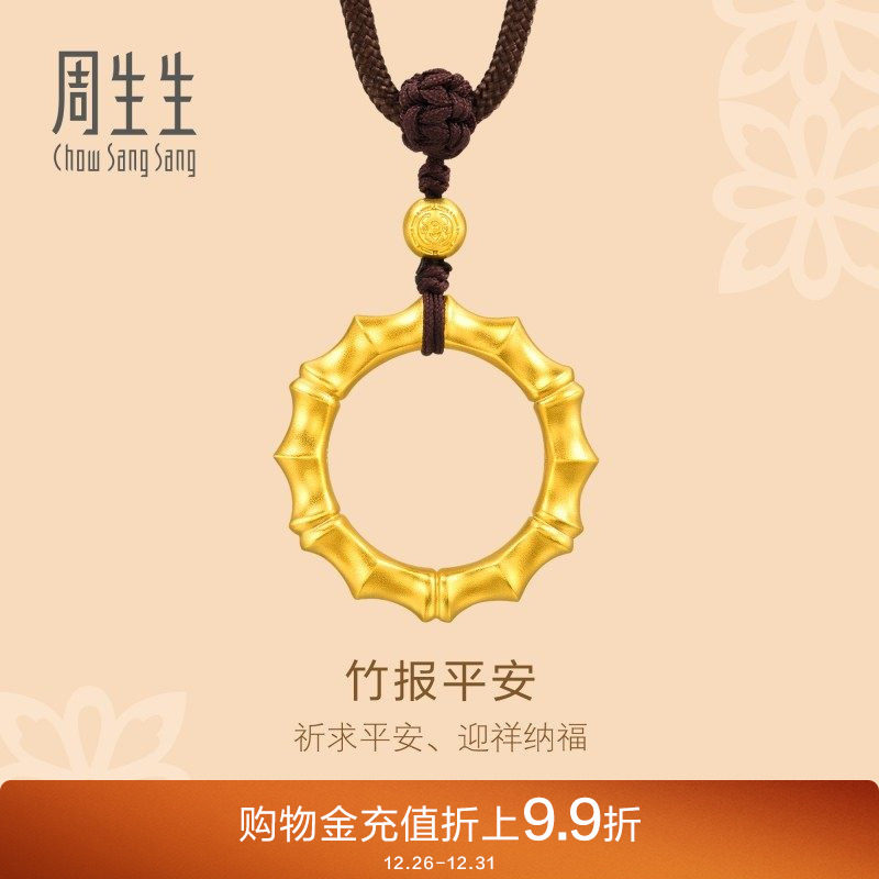 周生生古法黄金东方古祖竹节黄金吊坠项链足金92241Z计价