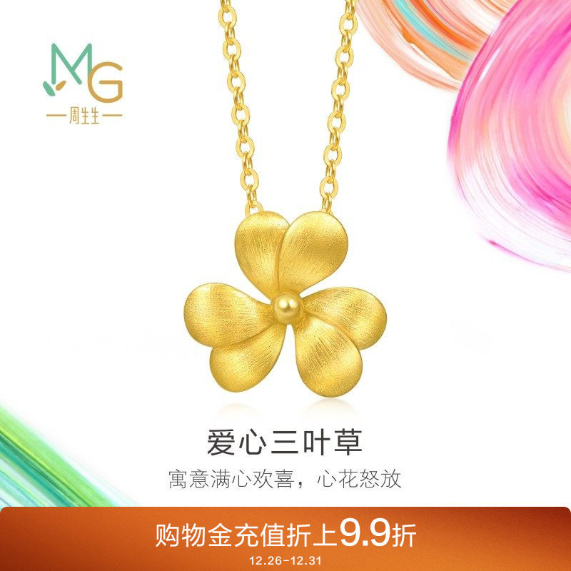 圣诞礼物周生生微糖系列黄金套链足金爱心三叶草项链送女友95518N