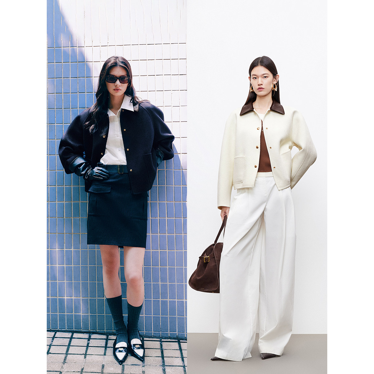 拼接pu领口 时髦加倍;廓形版型 利落有型
