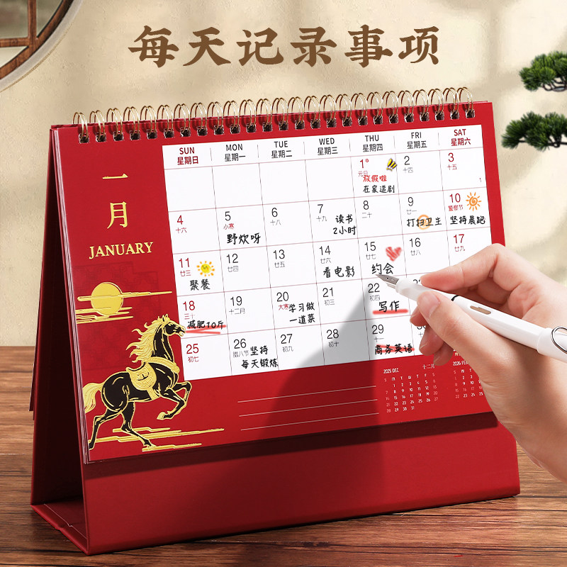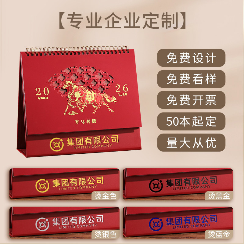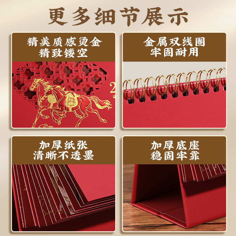 日历2026年新款十四张喜庆烫金精雕工艺月历商务办公桌面摆件打卡备忘录企业礼品三角台历定制logo送客户礼物