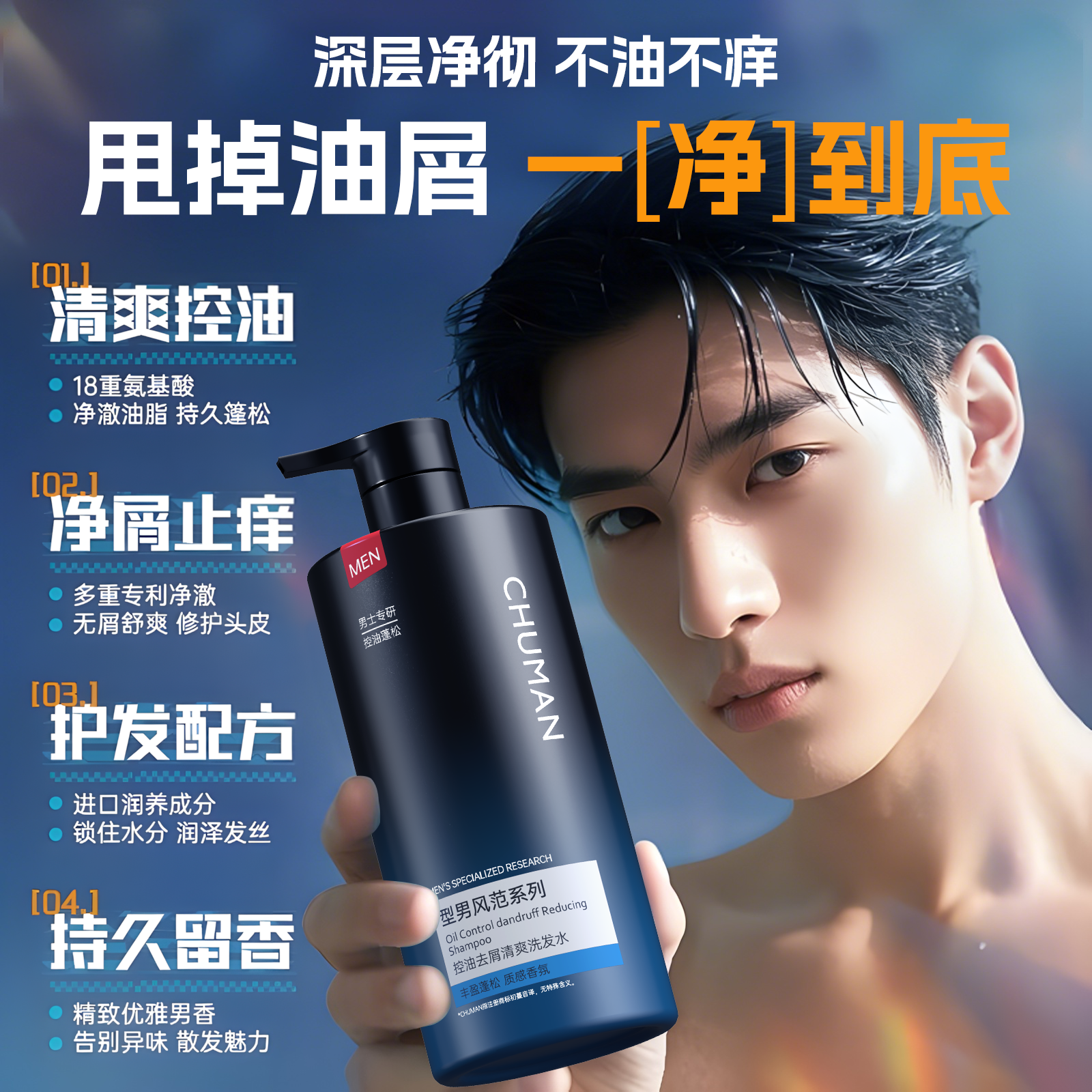 洗发水男士控油蓬松去屑止痒持久留香沐浴露套装洗头膏官方正品牌