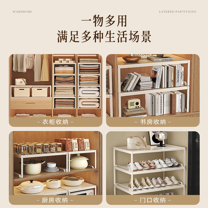 衣柜分层收纳神器宿舍柜子隔板分层架橱柜衣橱隔断伸缩置物架鞋柜