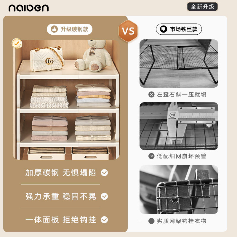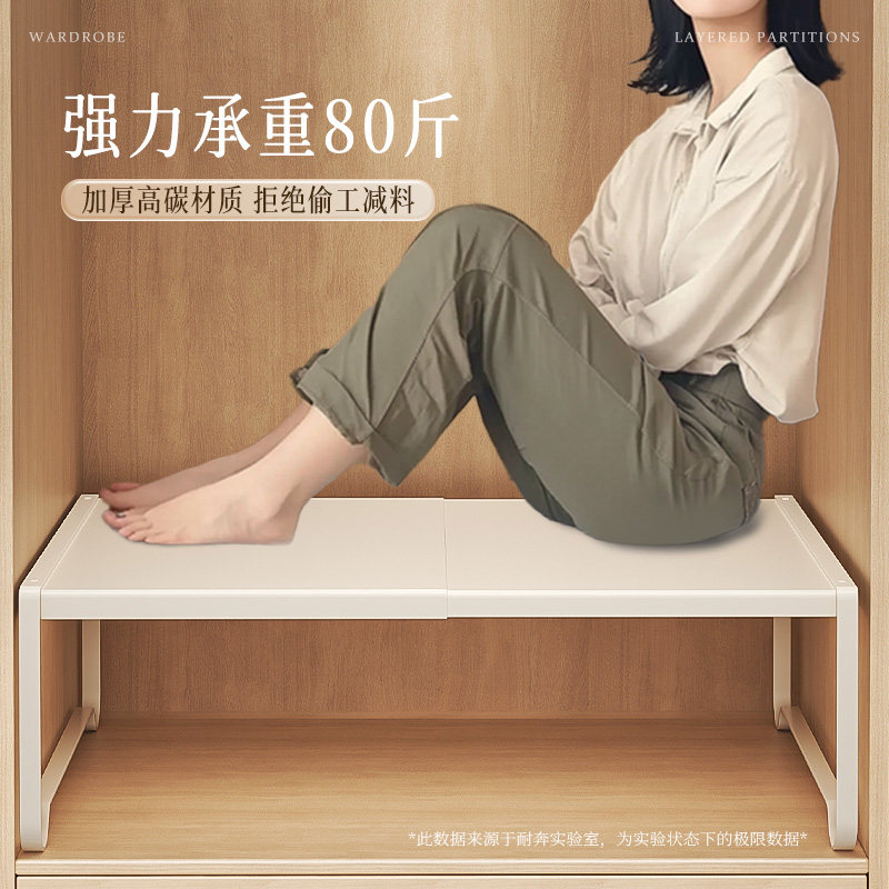衣柜分层隔板收纳神器柜子橱柜内伸缩置物架衣橱碳钢隔断分层架