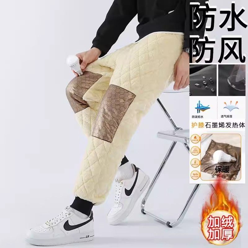 三防东北羽绒棉裤男冬季加绒加厚保暖羊羔绒长裤子防寒防水滑雪裤