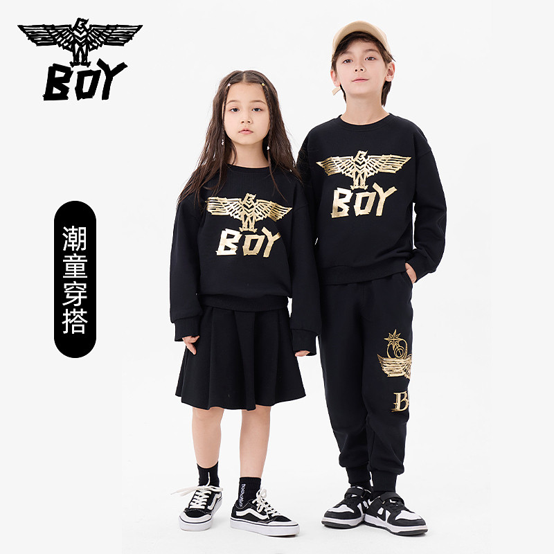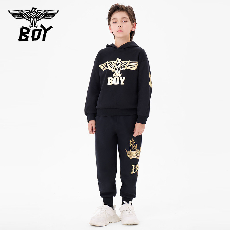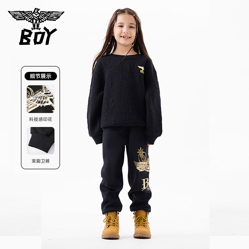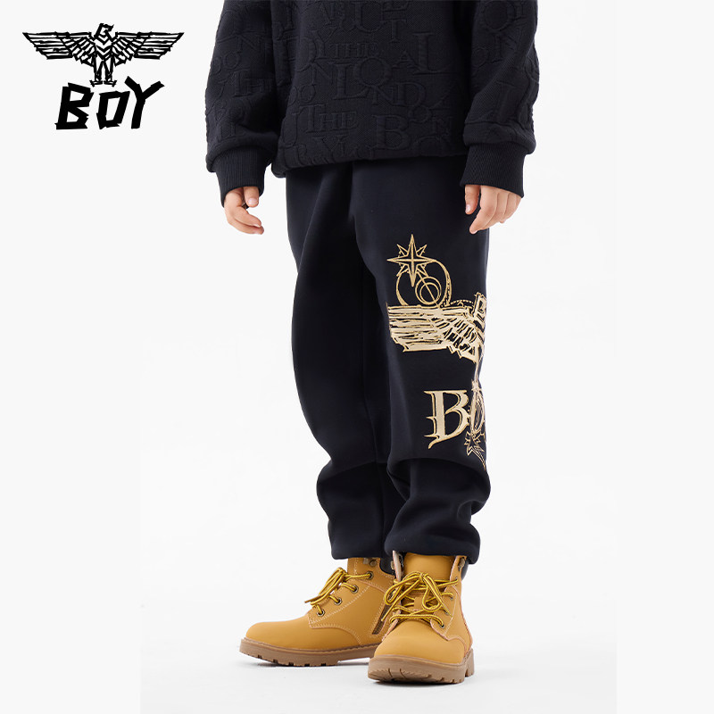 【加绒】BOY童装 秋冬季卫裤时尚烫金保暖束脚运动裤子长裤男女童