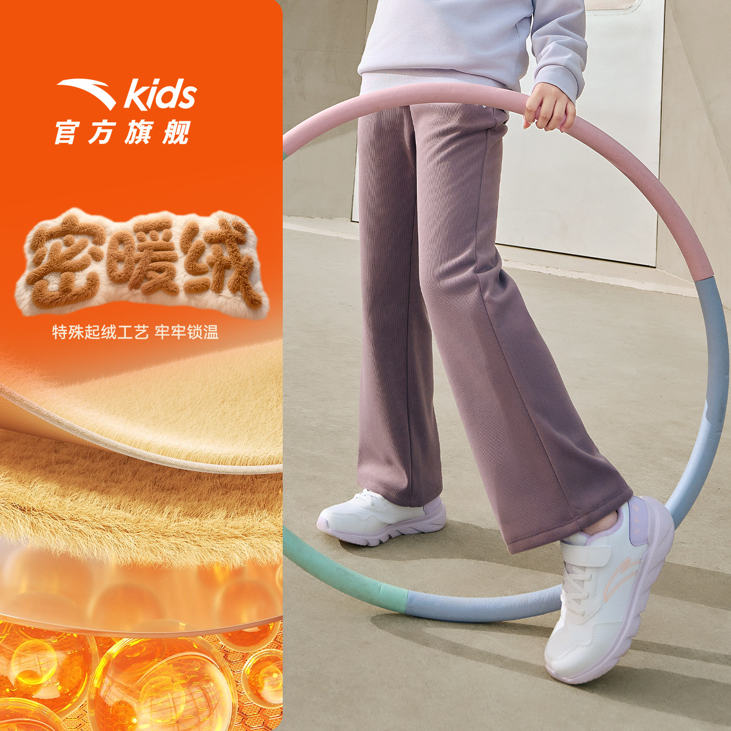 【暖芯裤】安踏儿童装女童加绒加厚裤子2025冬季新款灯芯绒喇叭裤