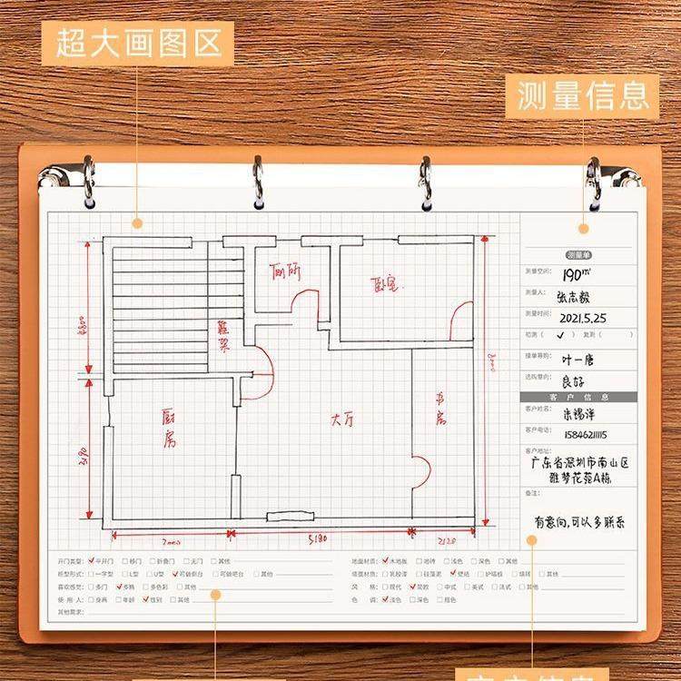 量房本活页设计师量尺本测量专用本A4笔记本子室内装修设计草图全