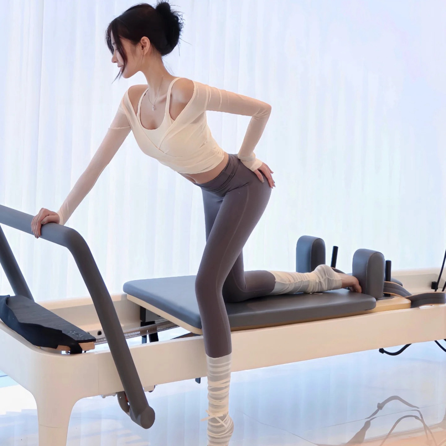 瑜伽服套装网红甜美健身三件套网纱外搭高腰收腹九分裤运动长袖女
