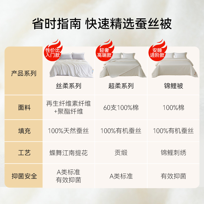 小红书同款水星家纺100支长绒棉巴马桑蚕丝被高端双宫茧秋冬被子