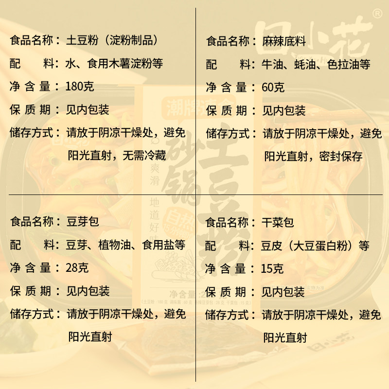 田小花砂锅土豆粉懒人自热小火锅网红宿舍夜宵米线酸辣粉速食食品