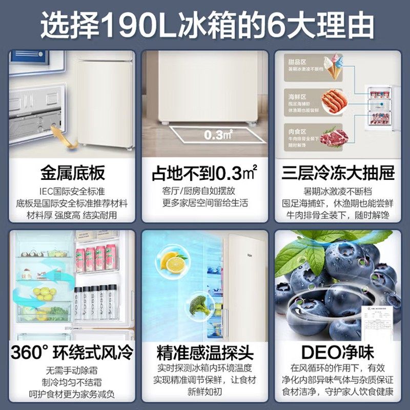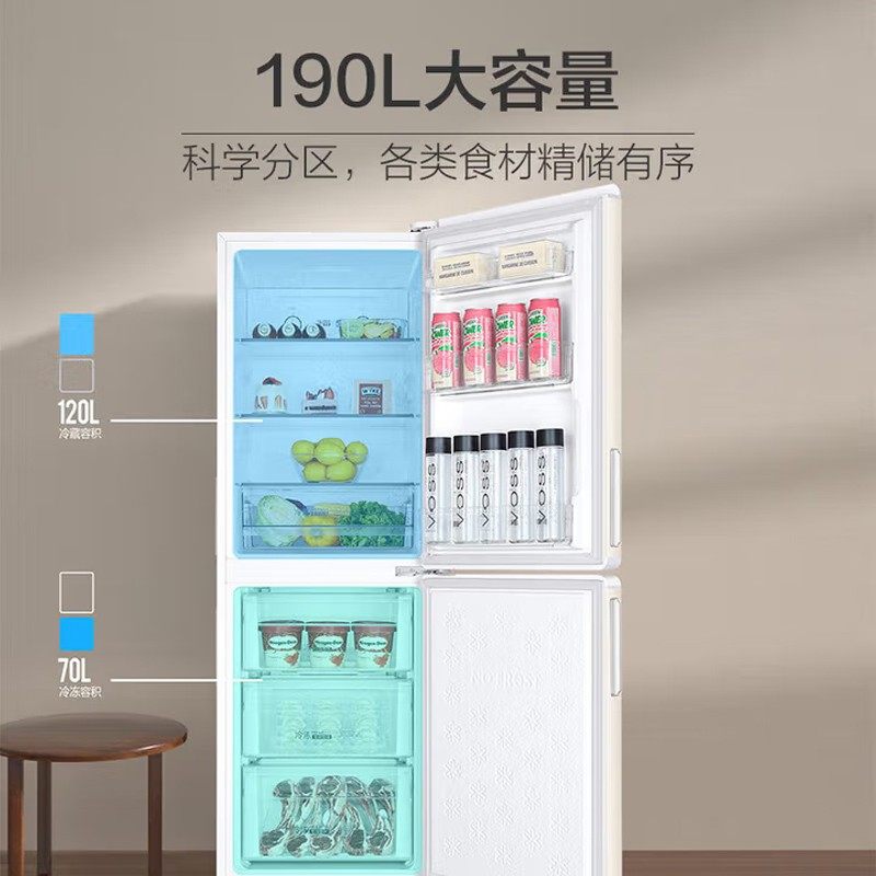 海尔风冷无霜冰箱190升双门小型家用迷你净味保鲜超薄两门电冰箱