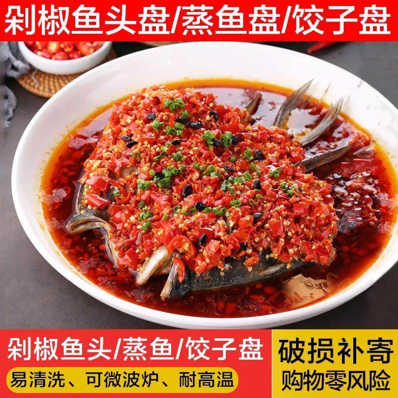 剁椒鱼头专用盘子大盘子家用装大盘鸡9-14英寸餐盘釉下彩高温盖子