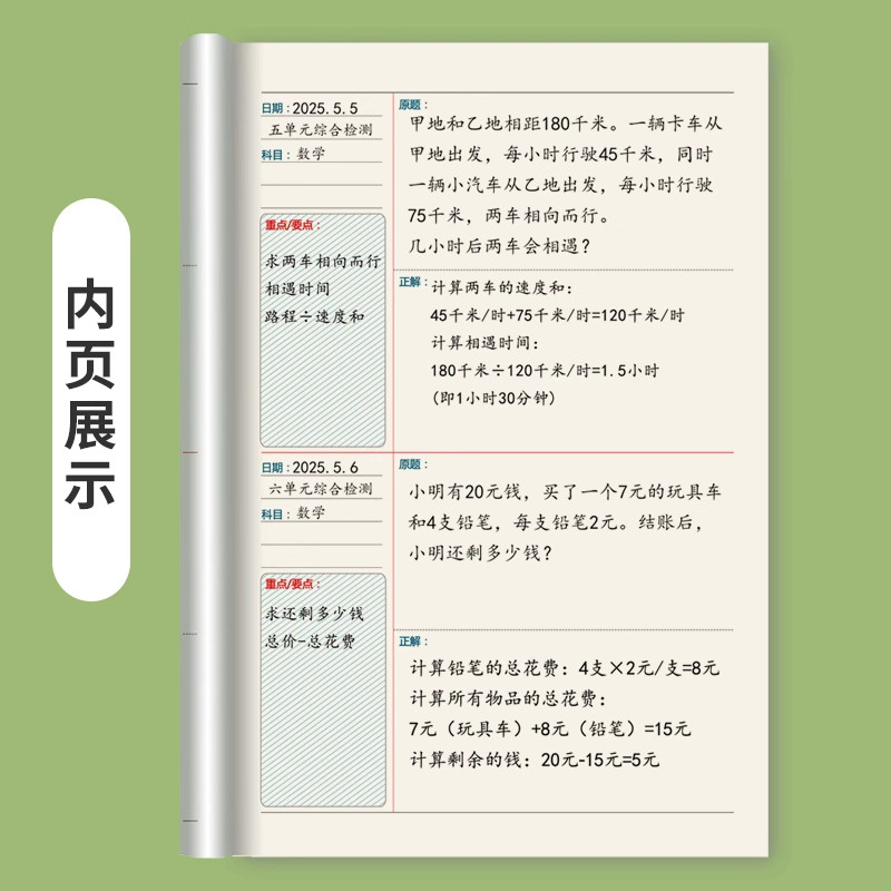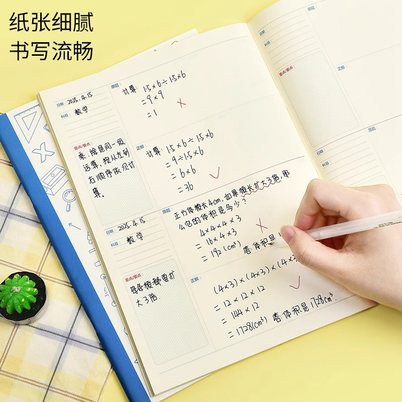 高颜值数学错题本小学生专用高初中生一二三四五六年级语文三合一英语实用型整理神器笔记本b5学霸考研错题集