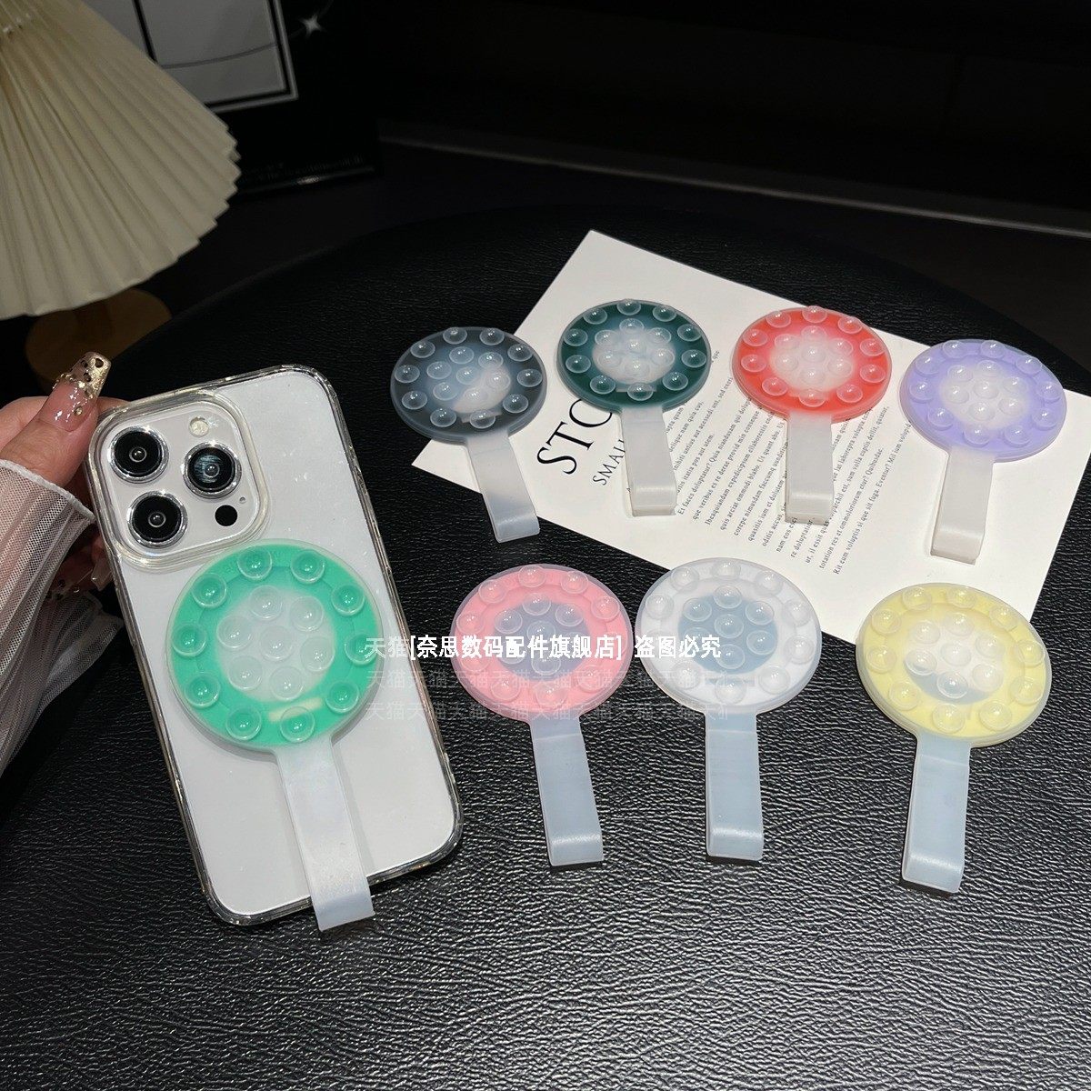 糖果色吸盘式手机壳磁吸支架健身跑步玻璃墙面防滑贴浴室镜子固定背贴厨房车载MagSafe适用iPhone16pro苹果15