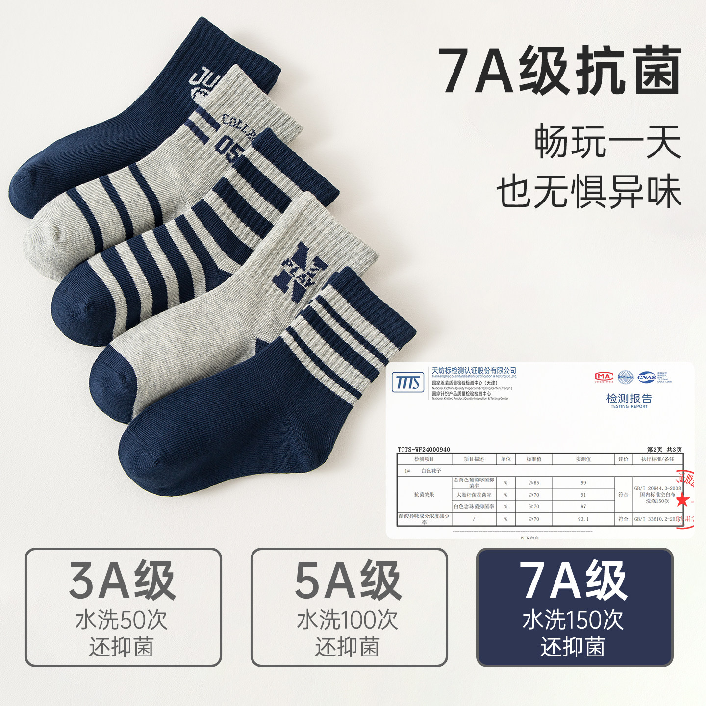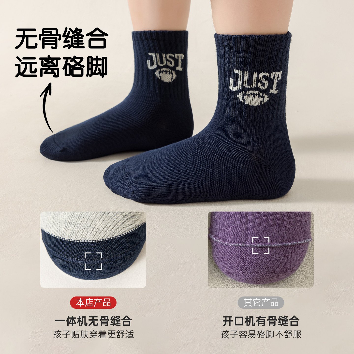 A类儿童袜子男童秋冬季无骨抗起球抗菌防臭男孩中大童中筒棉袜