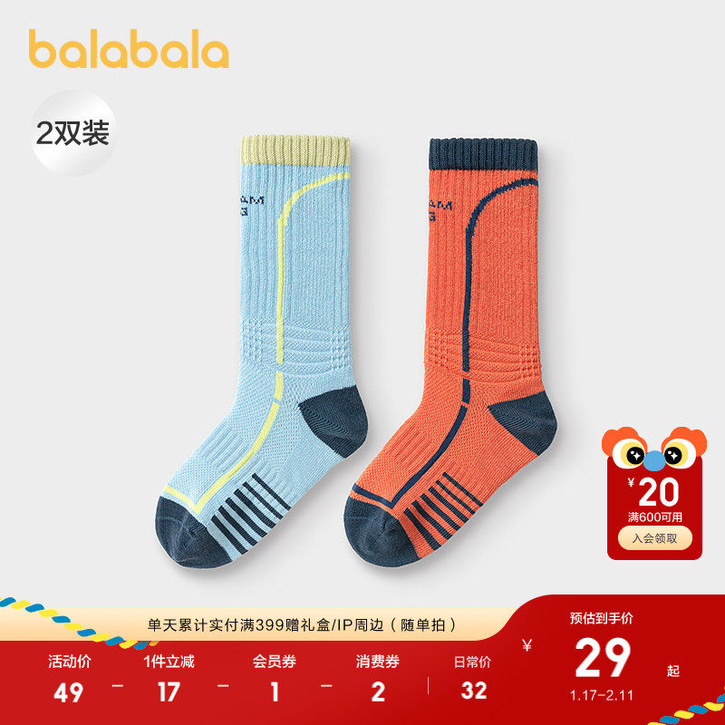 巴拉巴拉男童袜子秋新品儿童运动风袜吸湿抗菌两双装