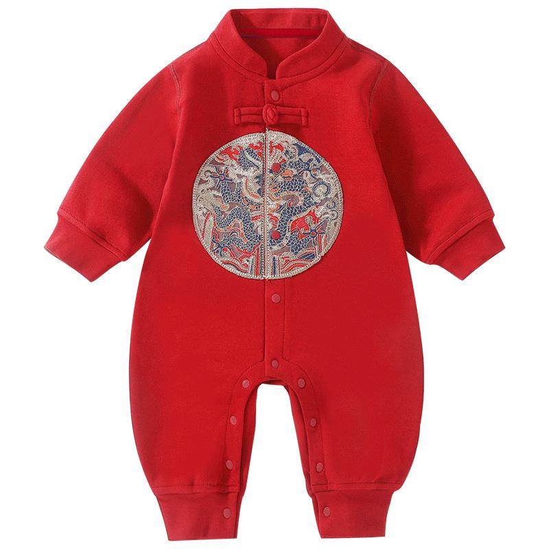 2026新年春秋周岁男女宝宝马甲连体衣装a类满月新生拜年婴儿衣服