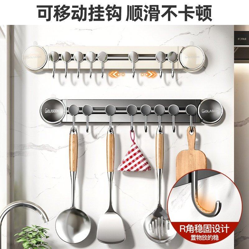 吸盘厨房挂钩厨房置物架免打孔挂杆锅铲勺子一排挂架壁挂式收纳架