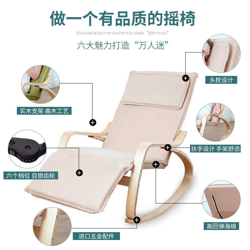 Q1实木曲木摇椅懒人沙发北欧懒人波昂摇摇椅躺椅阳台客厅午睡成人