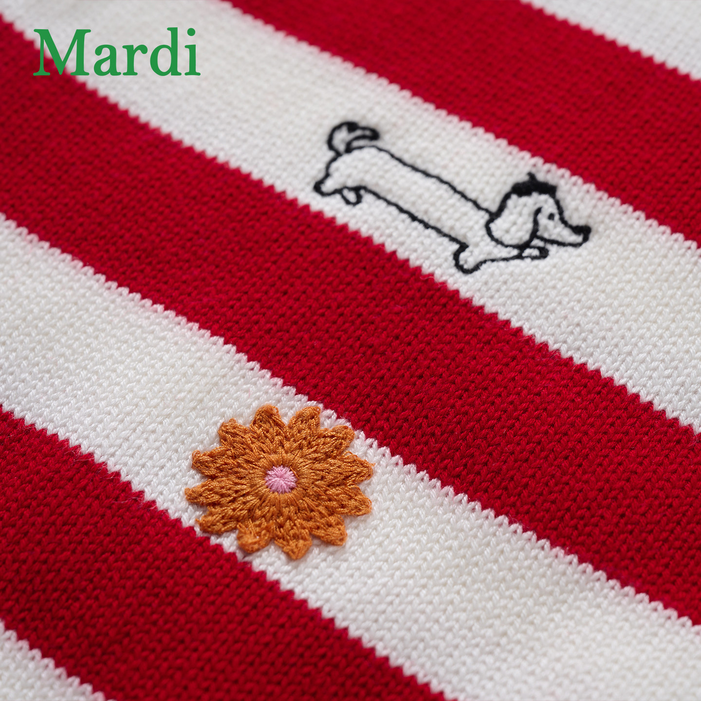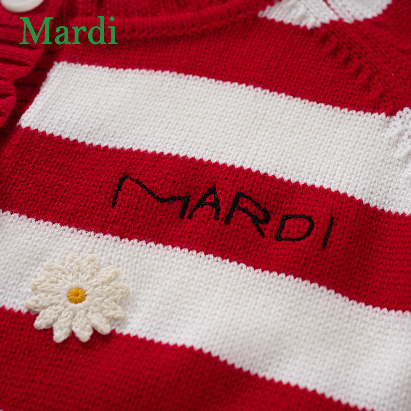 MARDI小雏菊毛衣女条纹针织开衫女圆领刺绣休闲时尚外套红色少女
