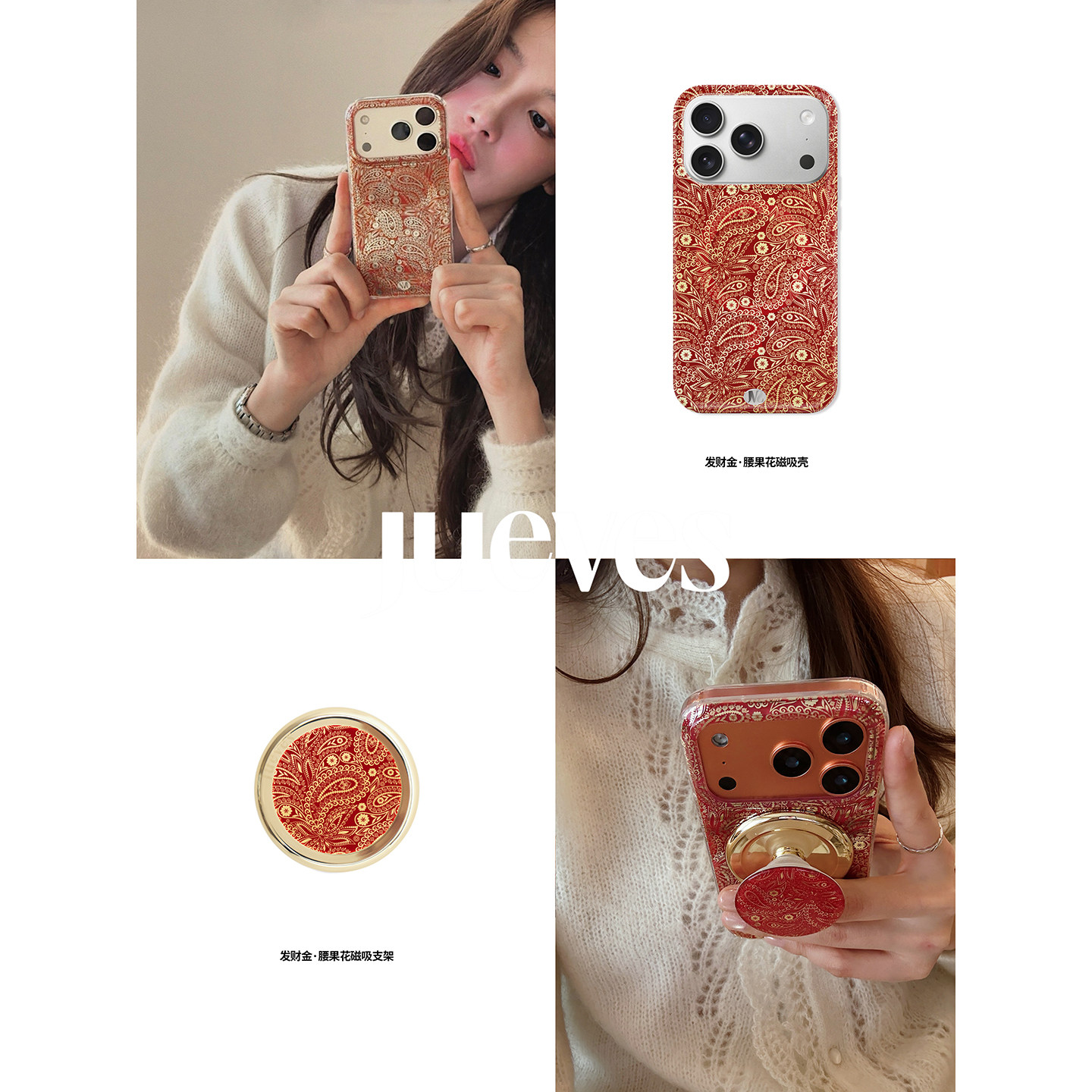 JUEVES星期四发财金·腰果花磁吸套装 适用苹果iPhone17ProMax/17Pro/16ProMax手机壳新年款