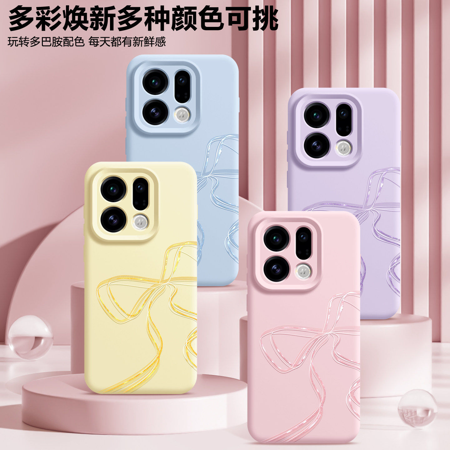 韩系蝴蝶结适用oppofindx9手机壳新款X8Pro液态创意保护套x8s带挂绳OPPO手提Ultra硅胶软糯X9pro镜头全包防摔
