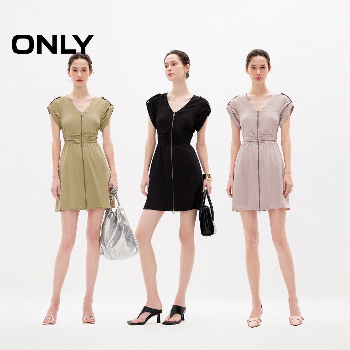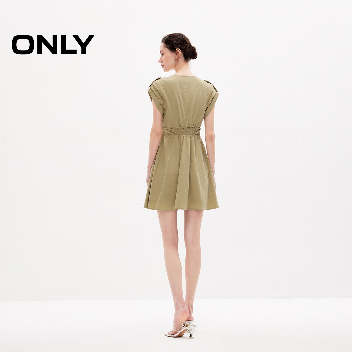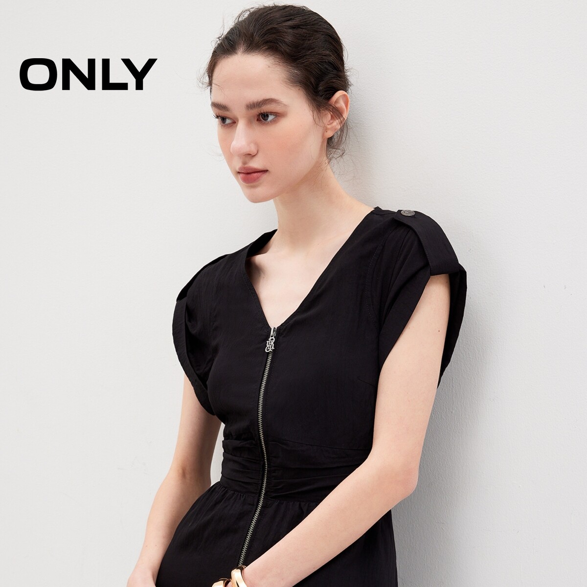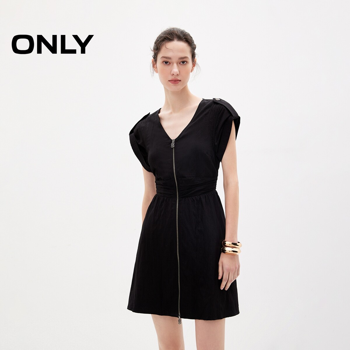 【ONLY奥莱】春夏新款时尚气质质感短款v领连衣裙女