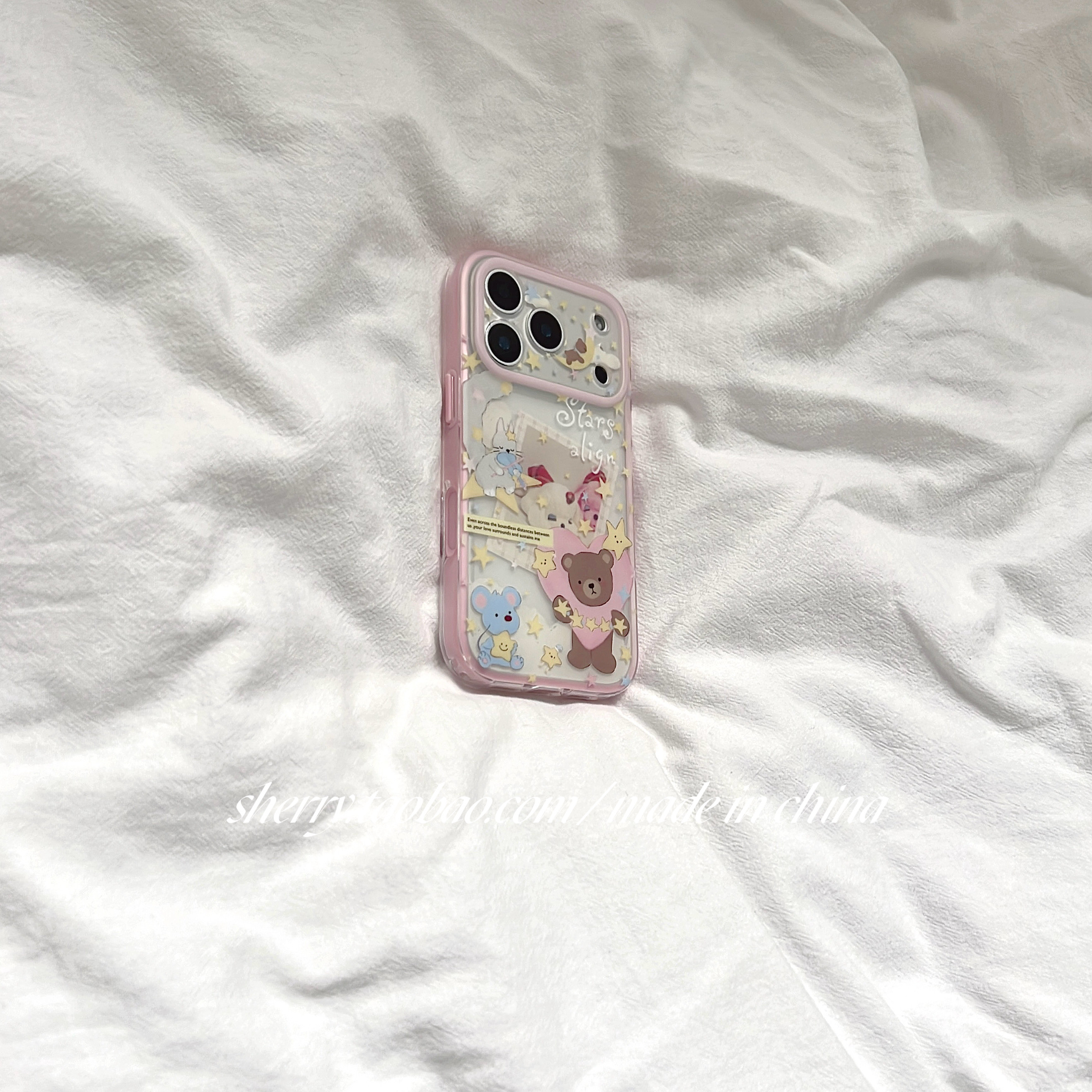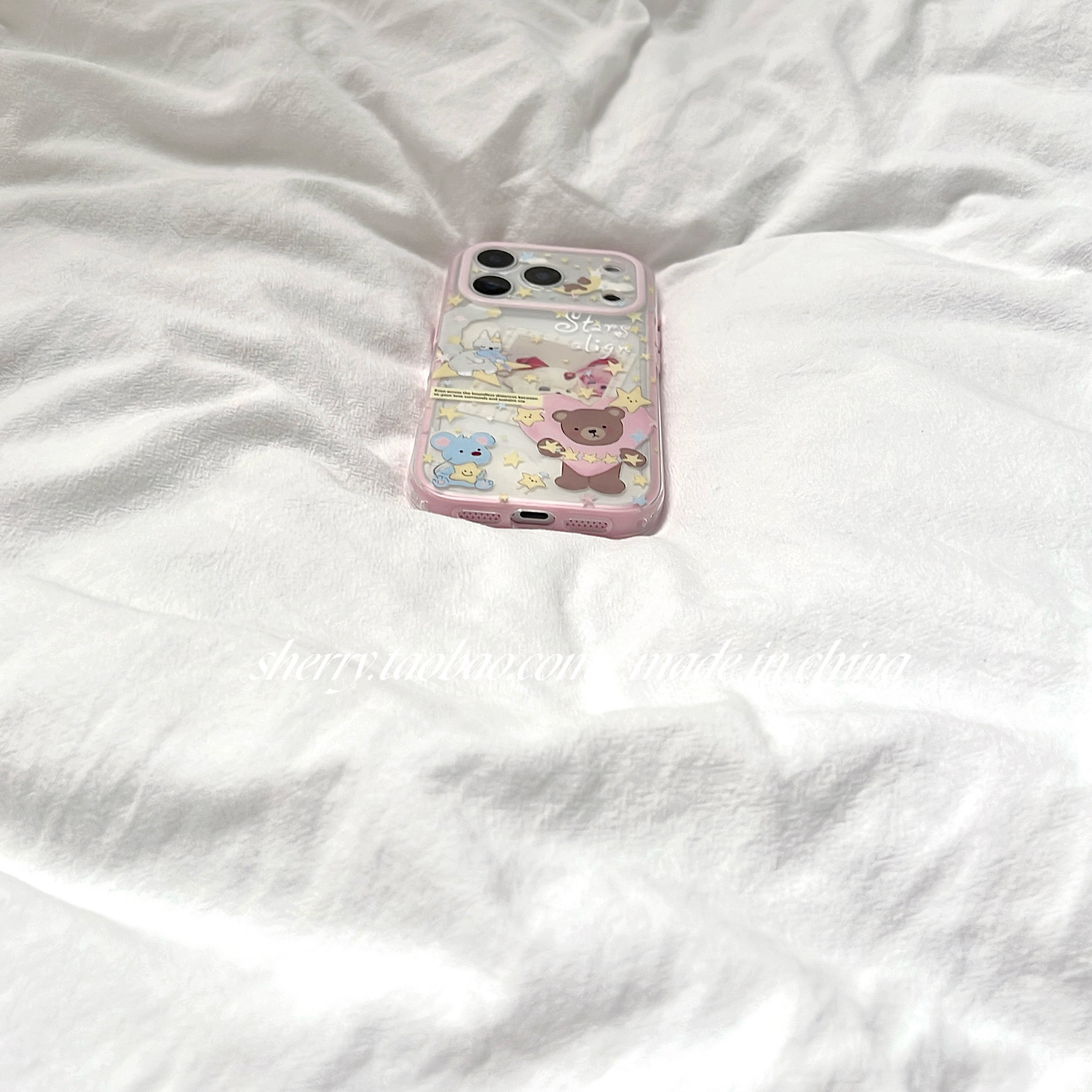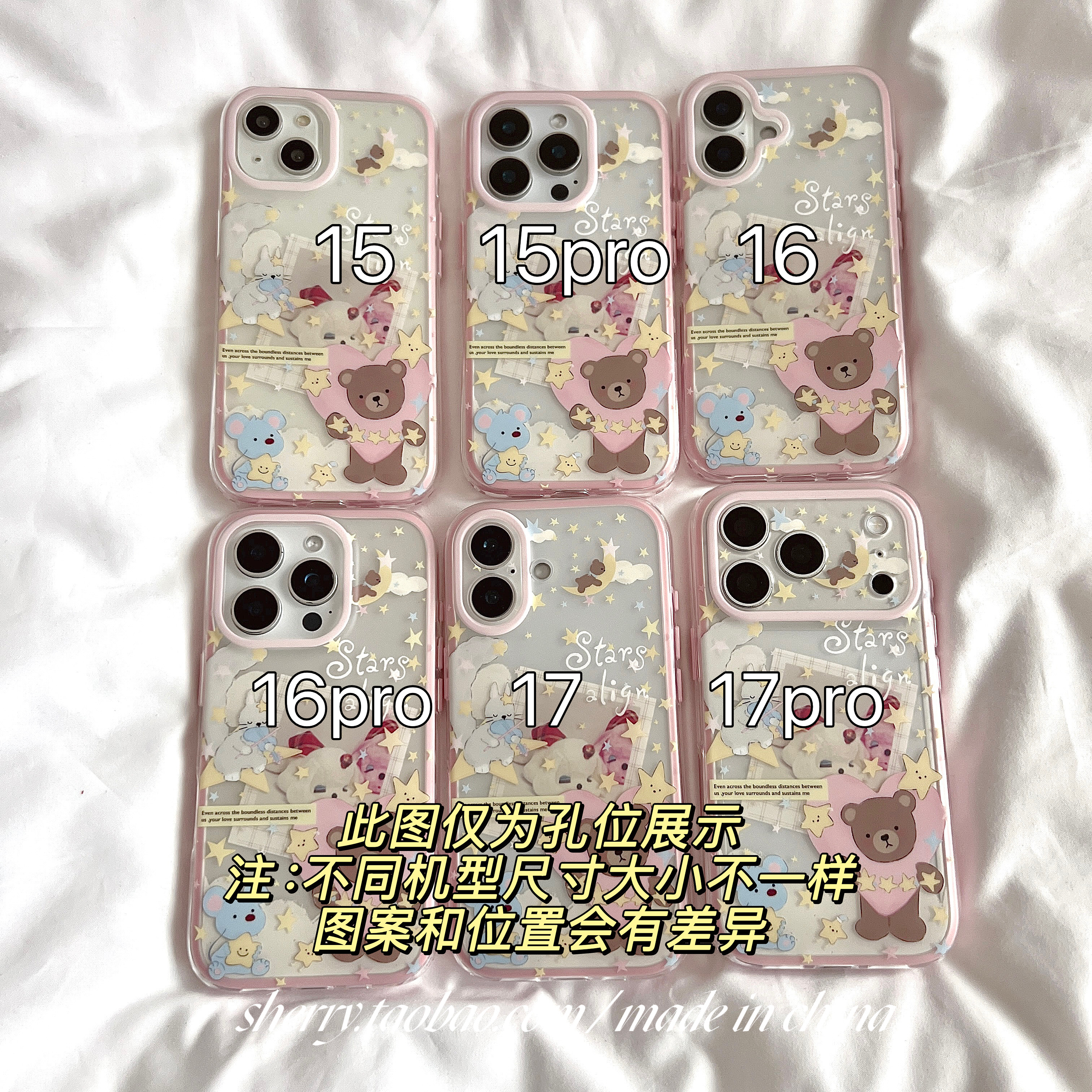 SHERRY*ins风肤感半透星星小熊粉边适用于苹果17ProMax手机壳iPhone16Pro小众少女心15简约14小清新卡通可爱