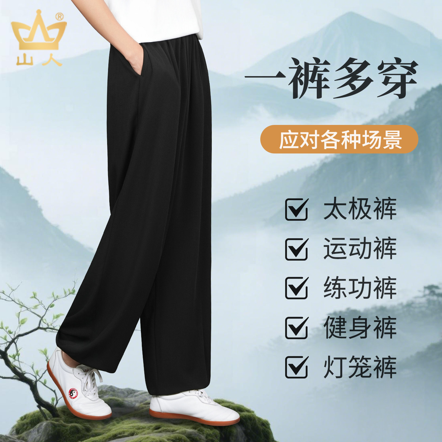 山人运动太极服2026新款太极裤女款春秋季灯笼裤武术裤运动裤男士