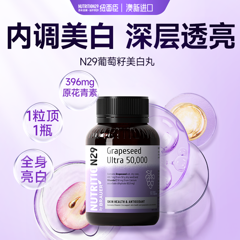 N29纽西臣葡萄籽美白丸内服花青素胶囊去黄内调全身白官方旗舰店