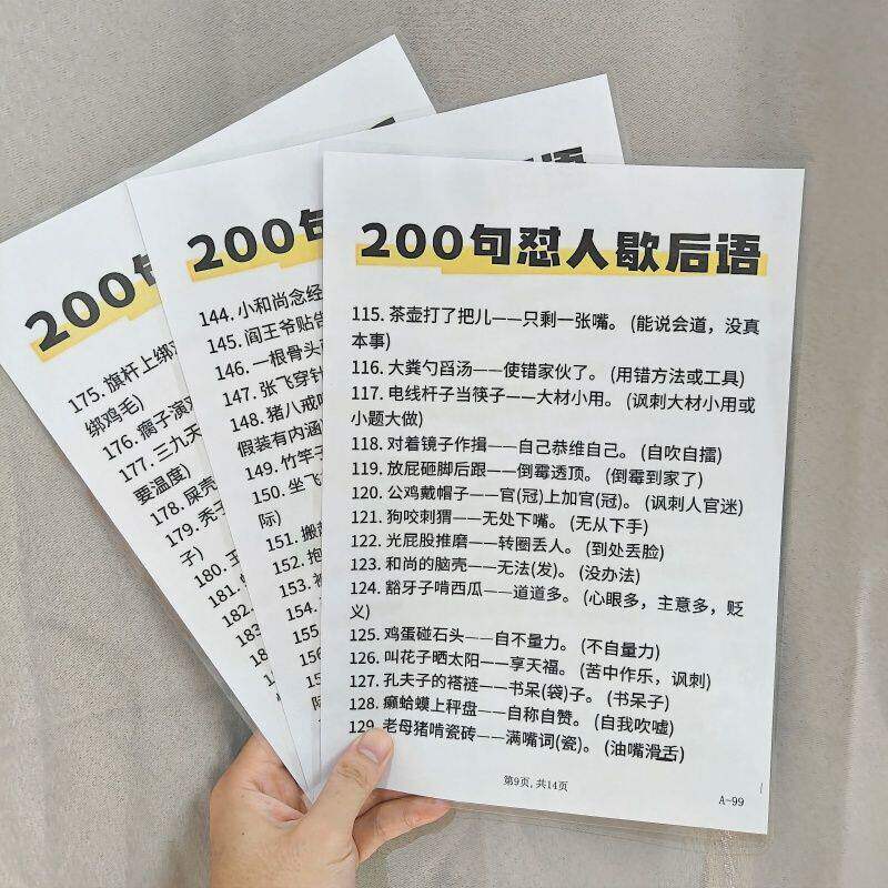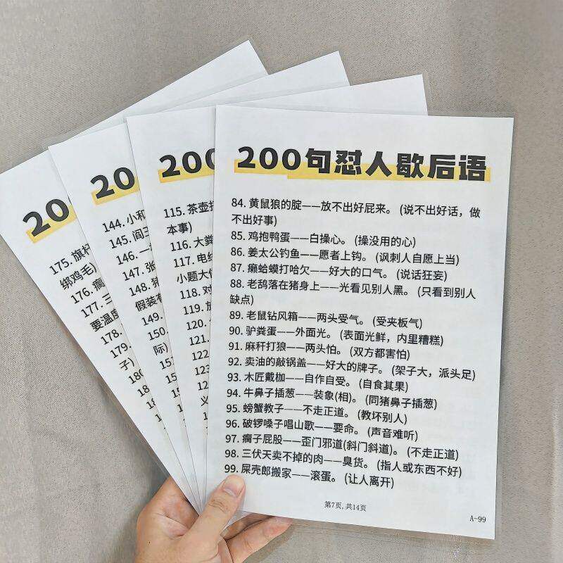200句怼人歇后语+防止聊冷场的118个聊天话题防水塑封挂图认知卡