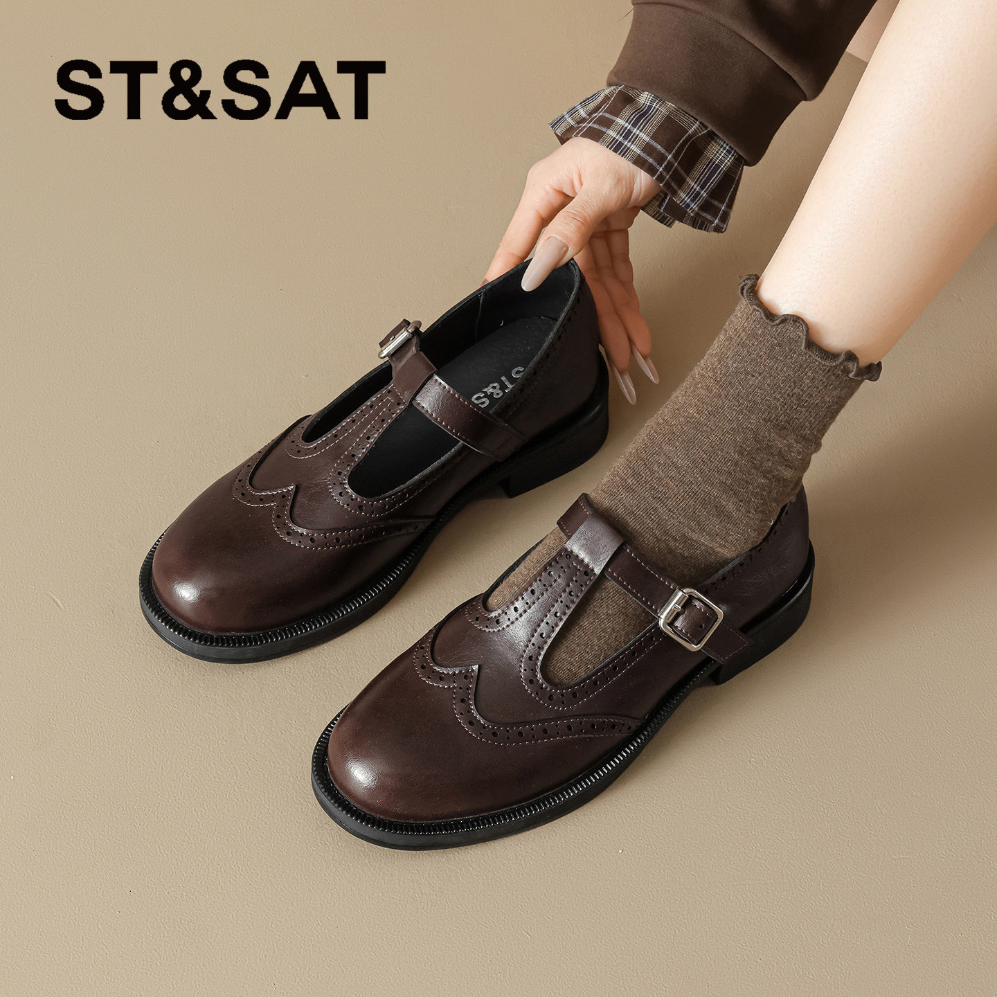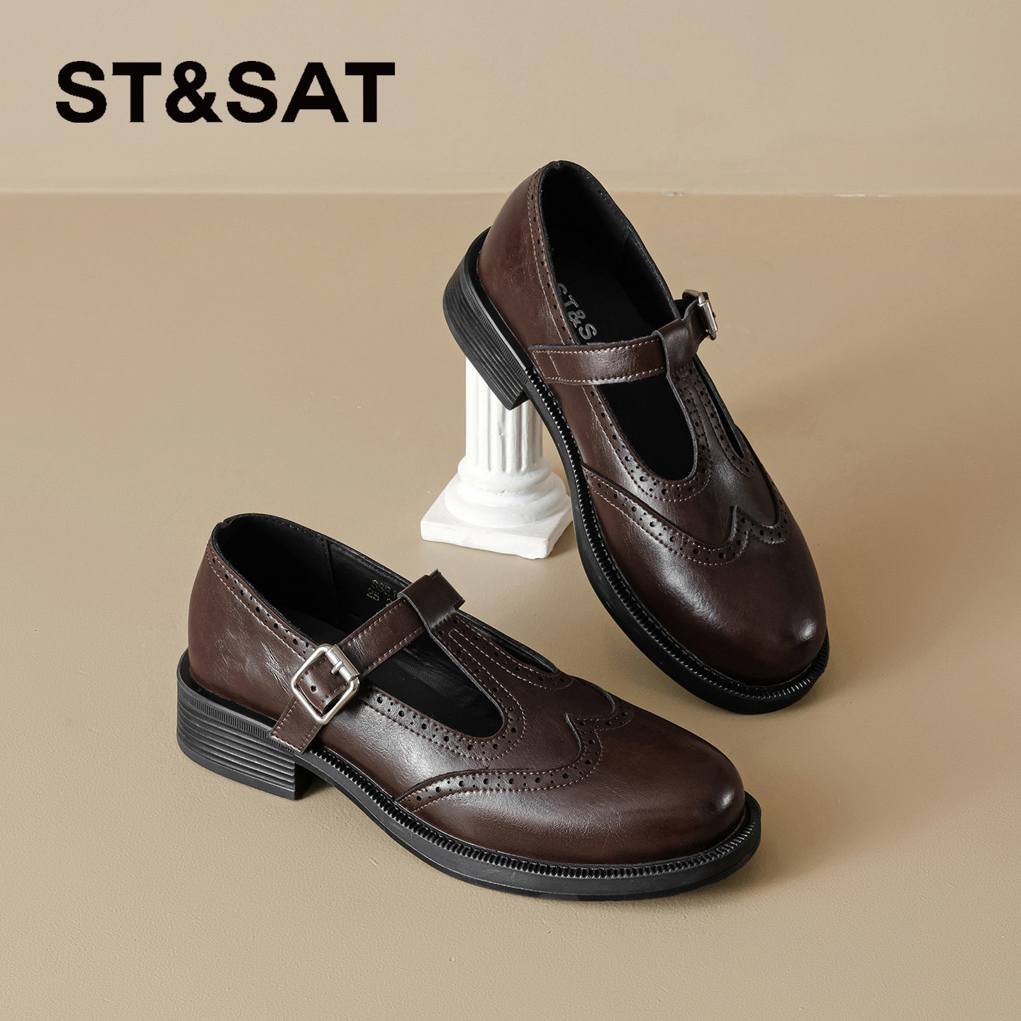 星期六布洛克乐福鞋女2026春季新款厚底英伦风棕色小皮鞋通勤单鞋