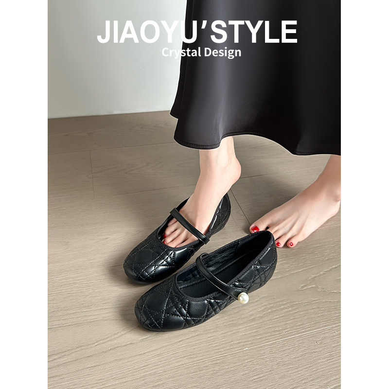 董洁同款真美诗摩卡慕斯2025秋新款羊皮软底芭蕾玛丽珍单鞋女