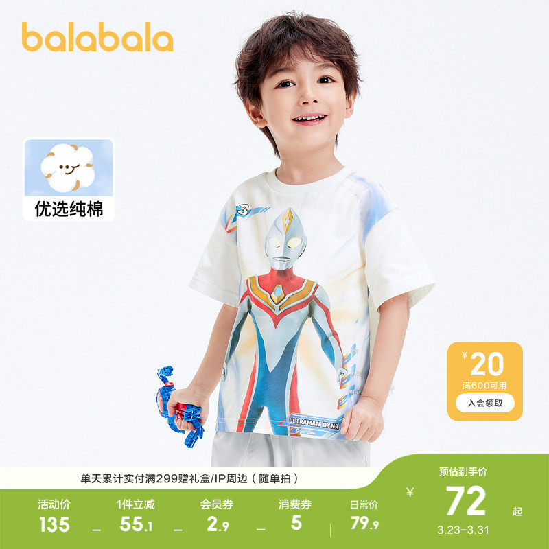 【奥特曼IP】巴拉巴拉童装儿童短袖男童轻薄春夏装纯棉休闲上衣潮