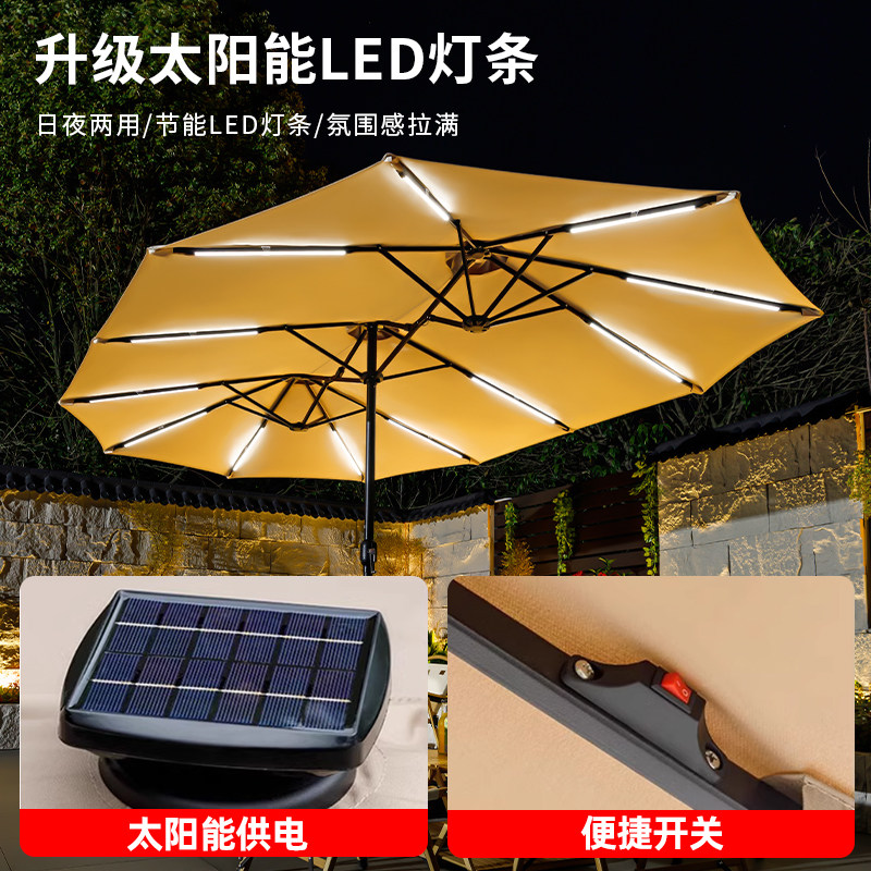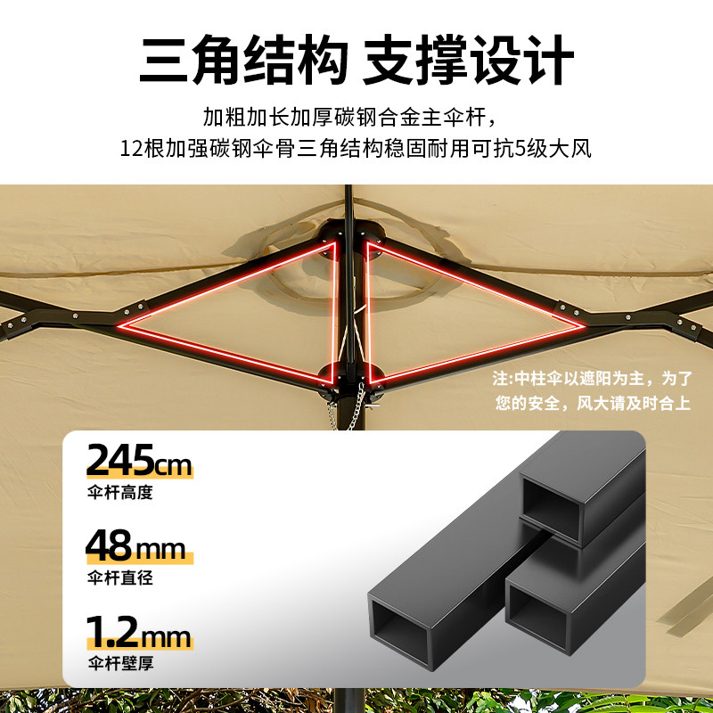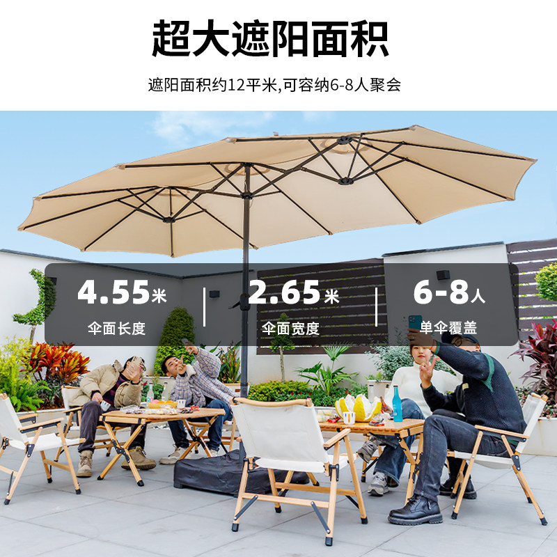 户外遮阳伞露台别墅庭院伞三头中柱伞咖啡厅露营室外摆摊大太阳伞
