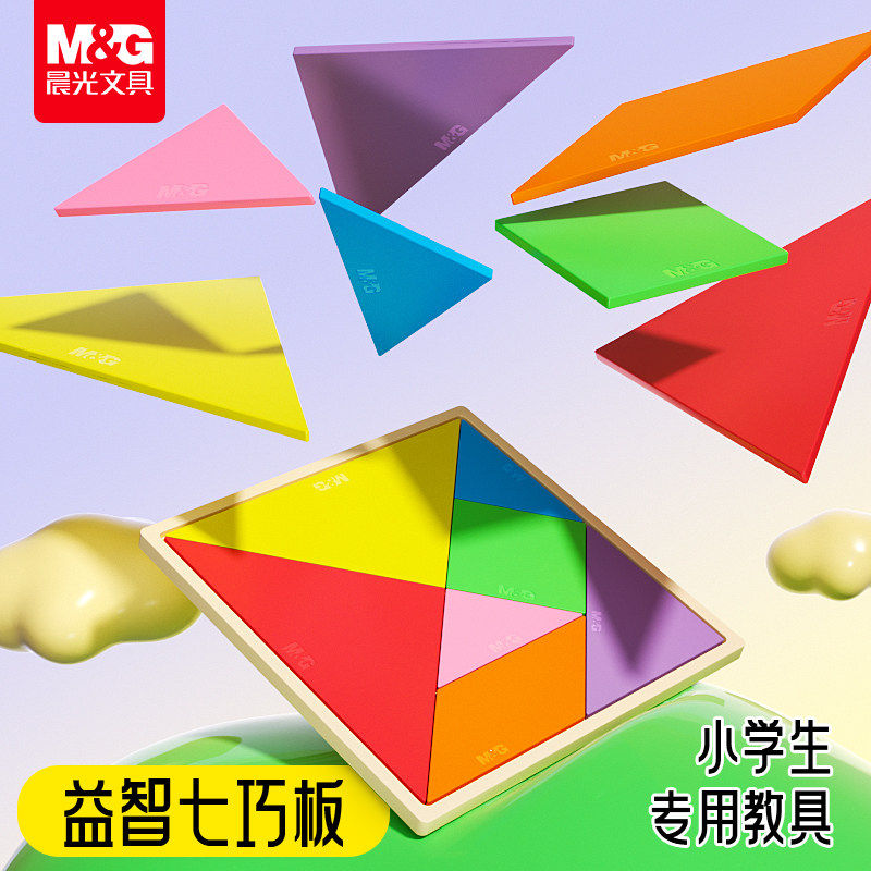 晨光磁力七巧板小学生专用一年级儿童拼图3到6岁数学智力益智教具正方体磁吸图形磁性钟表平面几何片玩具计数