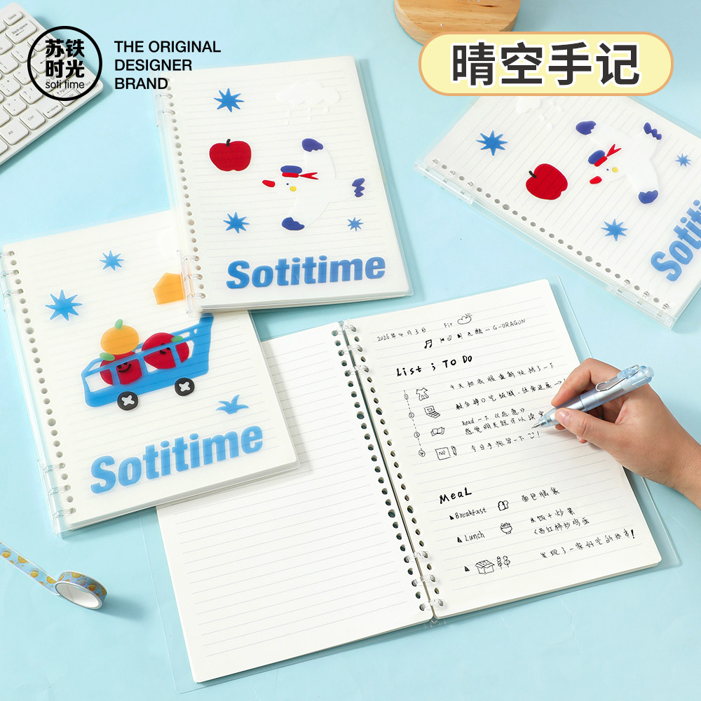 苏铁时光B5不硌手笔记本活页本晴空手记系列创意高颜值记事本可拆卸横线学生可爱卡通横线本学习用品手账本