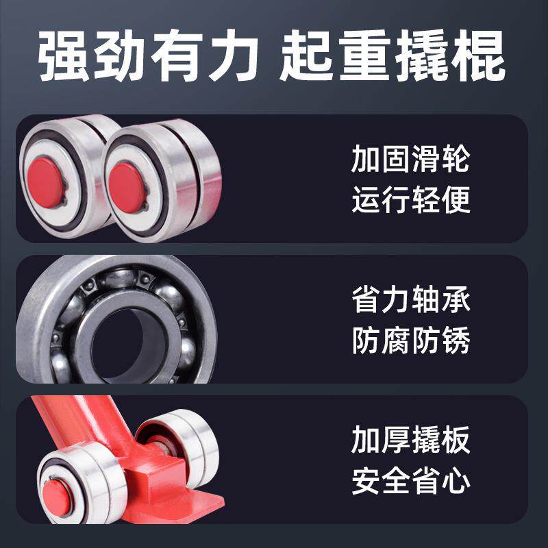 起重轴承撬棍撬棒重型带轮子滑轮3/5/8/10吨撬杠工具省力搬运翘棍