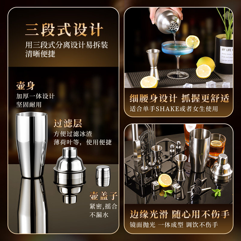 304不锈钢雪克杯调酒器套装手打柠檬茶工具雪克壶鸡尾酒奶茶制作