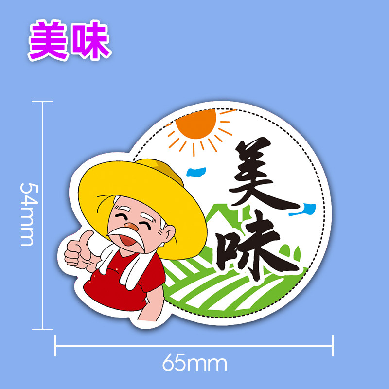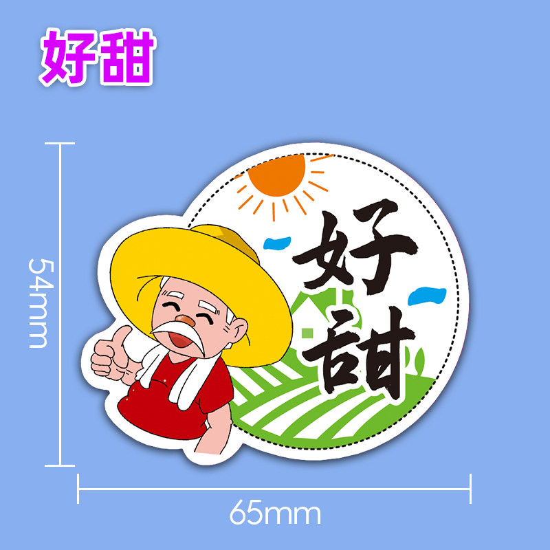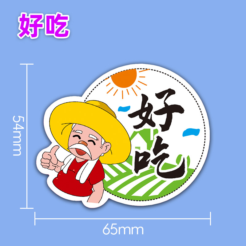 一次性水果通用标签圆形老爷子招牌热卖不干胶贴纸包装盒覆膜商标