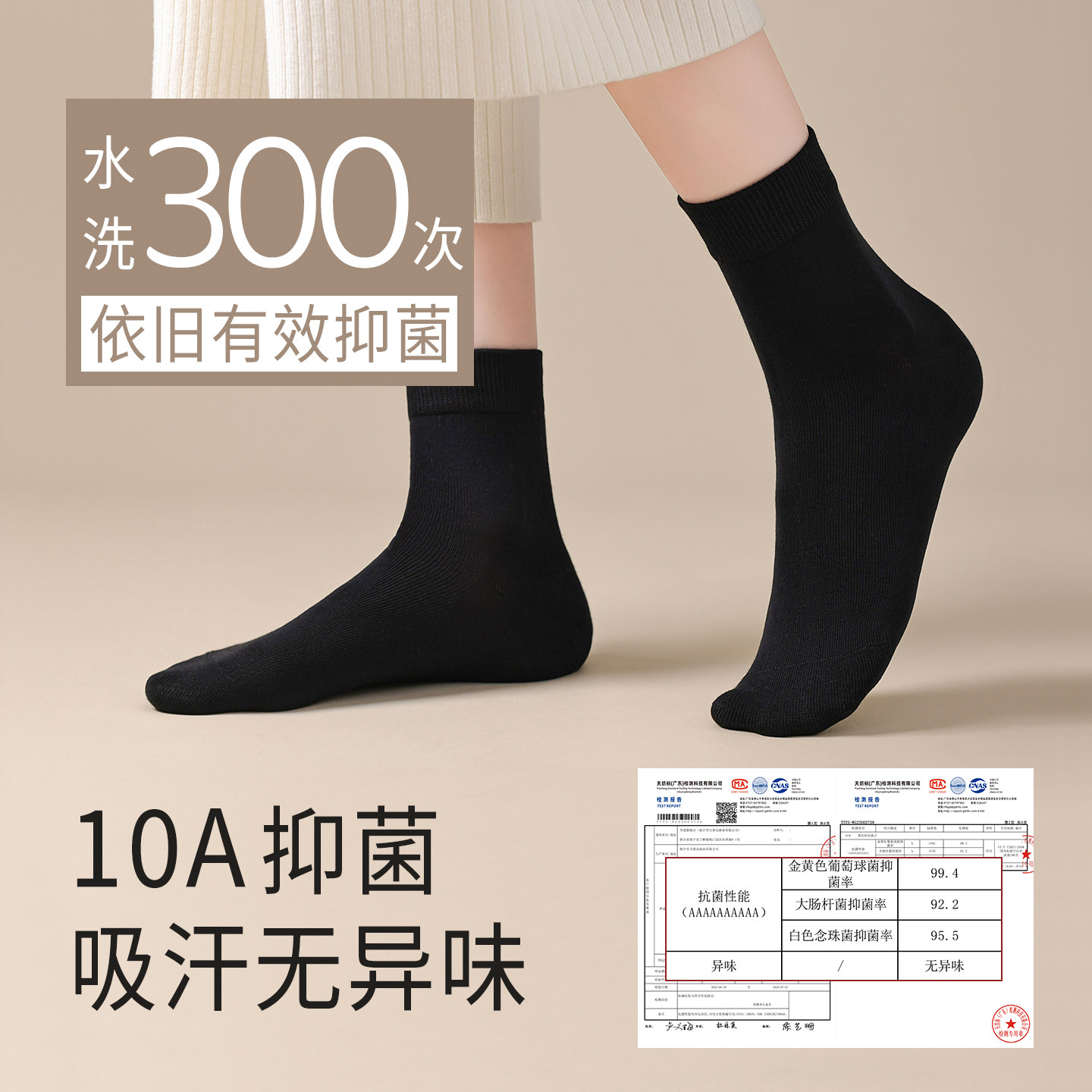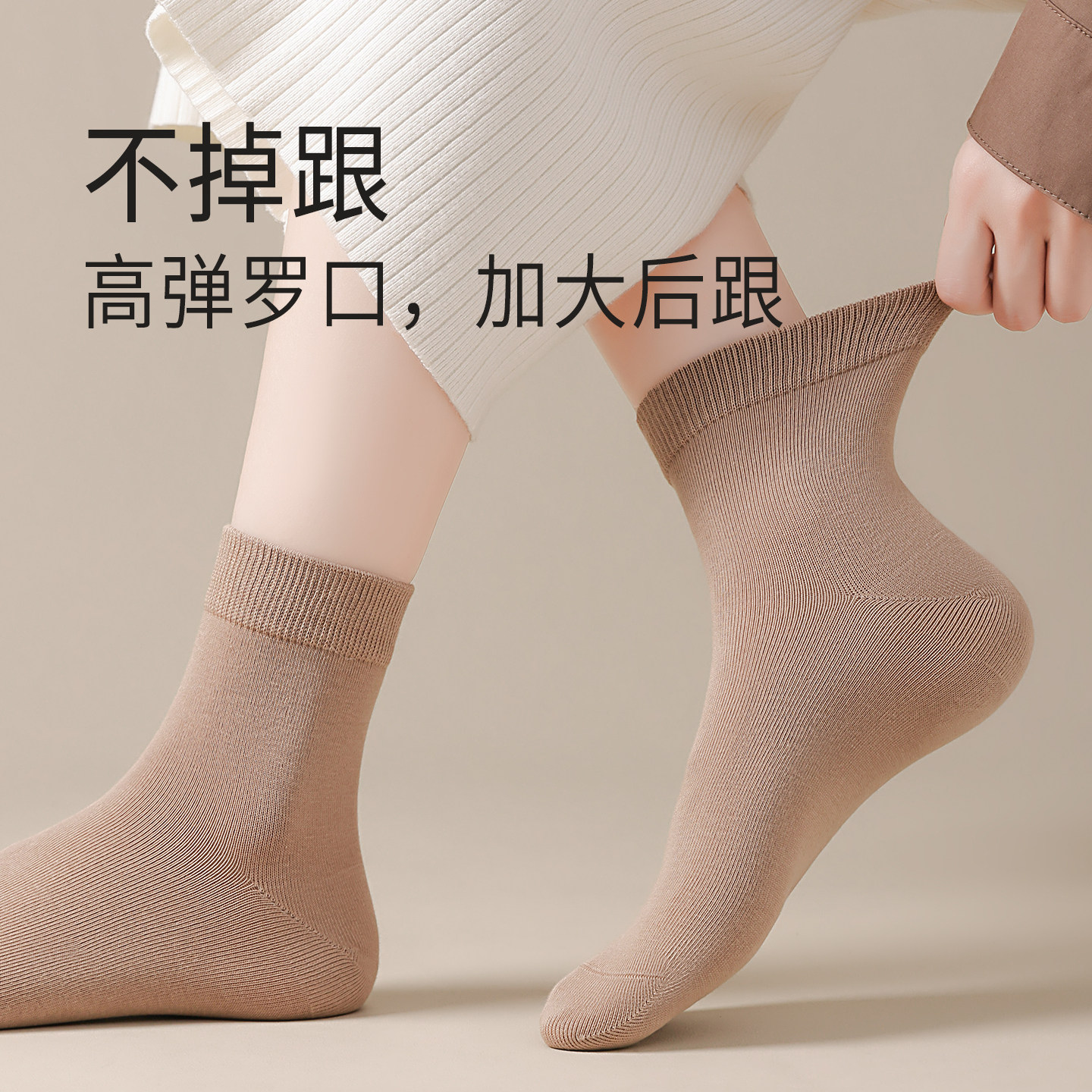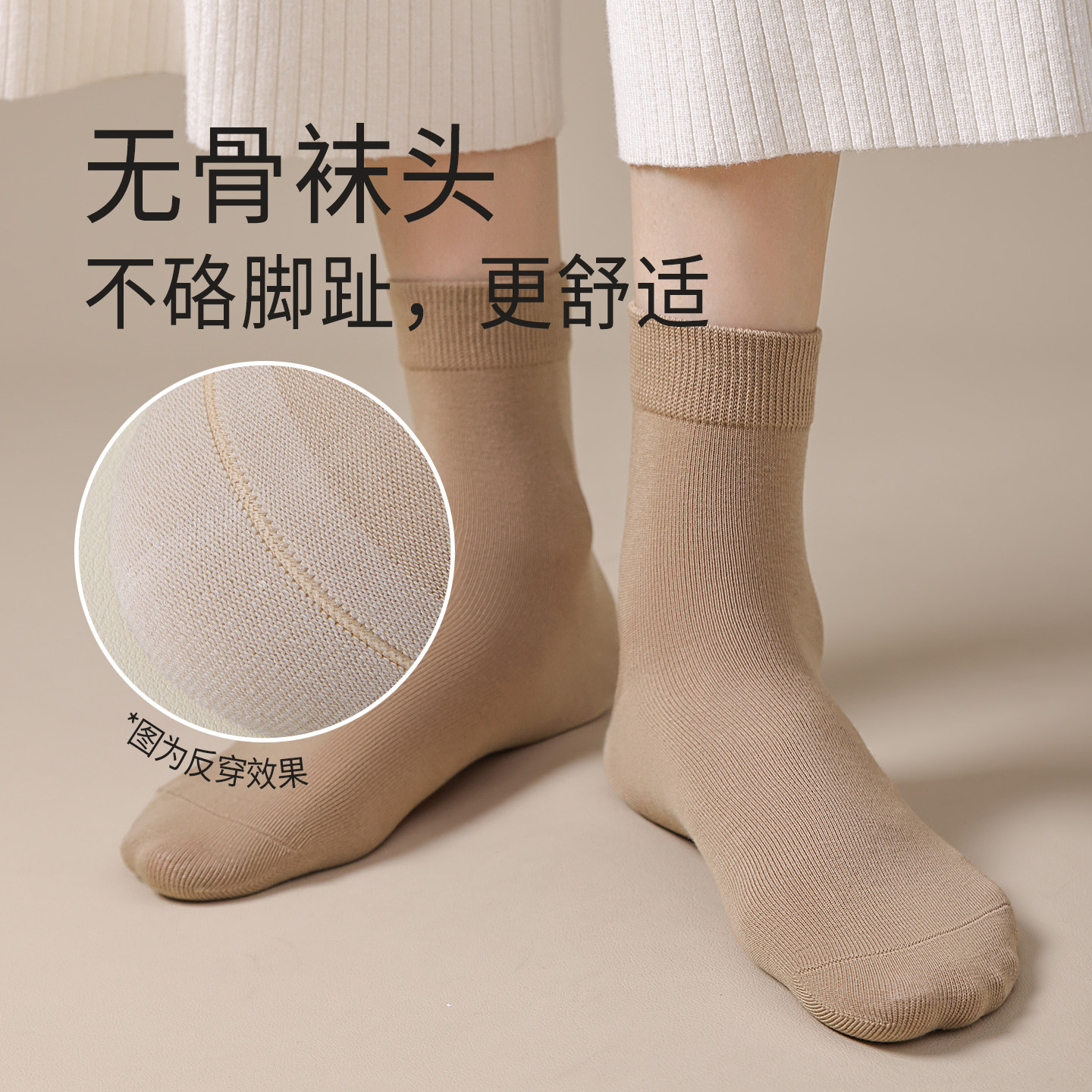 抗菌防臭纯棉纱线无骨袜头吸湿排汗中筒女袜