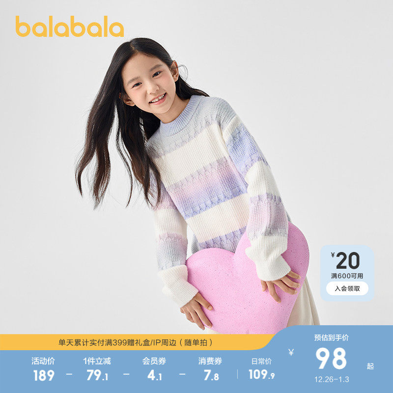巴拉巴拉童装儿童毛衣女童秋冬装大童针织衫毛衫线衣百搭时尚上衣