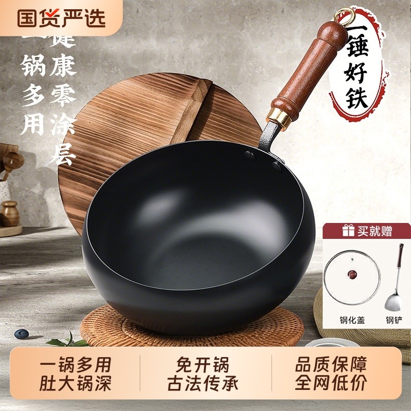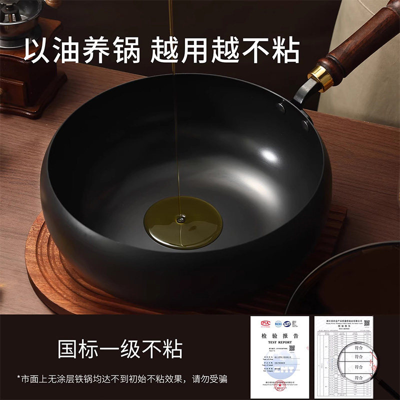 铁锅官方旗舰炒菜锅老式炒锅铁锅家用不粘锅无涂层燃气灶适用