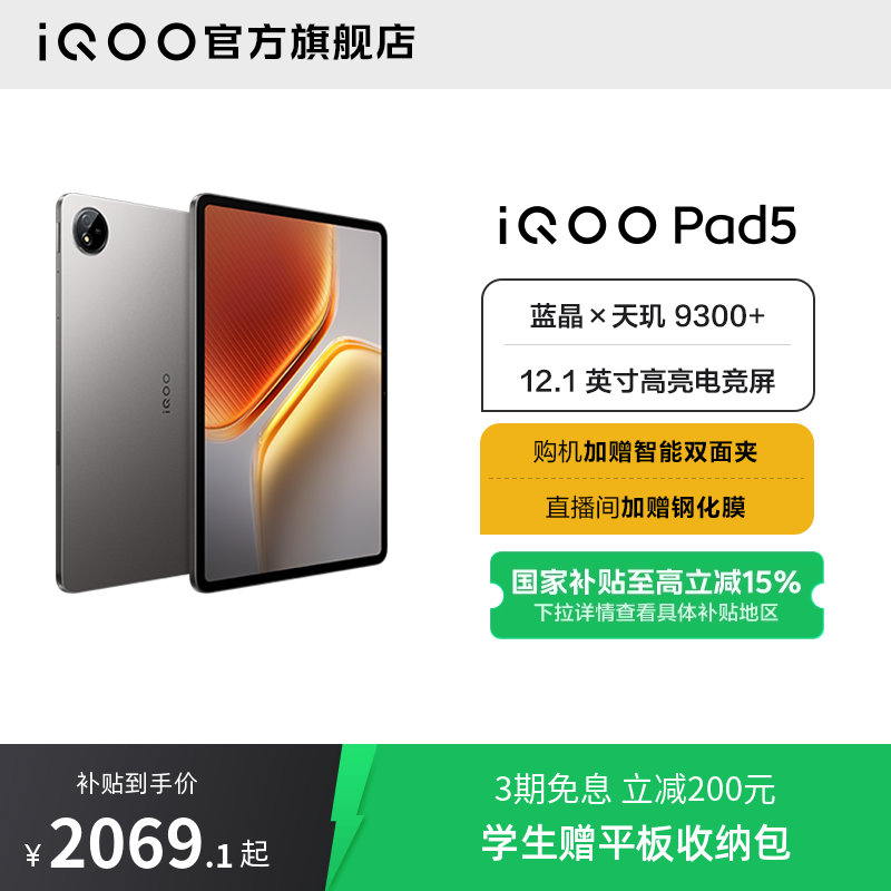 【直播间抢红包 国补10% 】vivo iQOO Pad5平板电脑新款天玑9300+学生12.1英寸